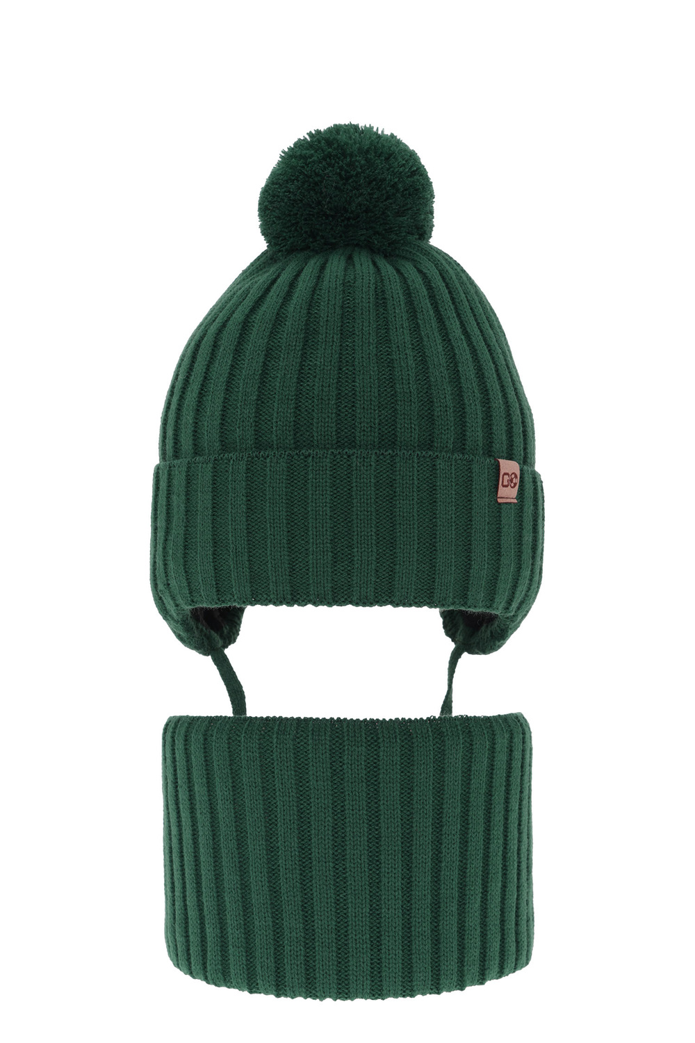Komplet zimný chlapčenský: čiapka a tunel zelený s bambuľou Carlo