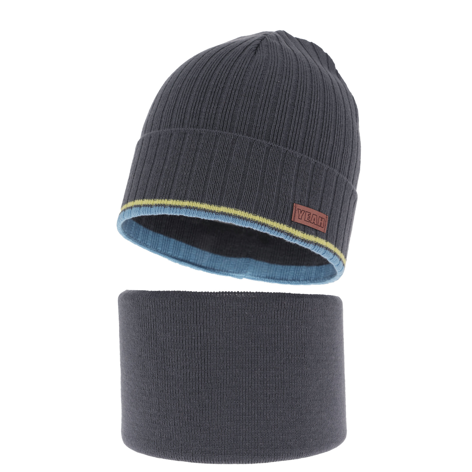Jesenný/jarný chlapčenský set: čiapka a tunel, s bavlnou, sivý London