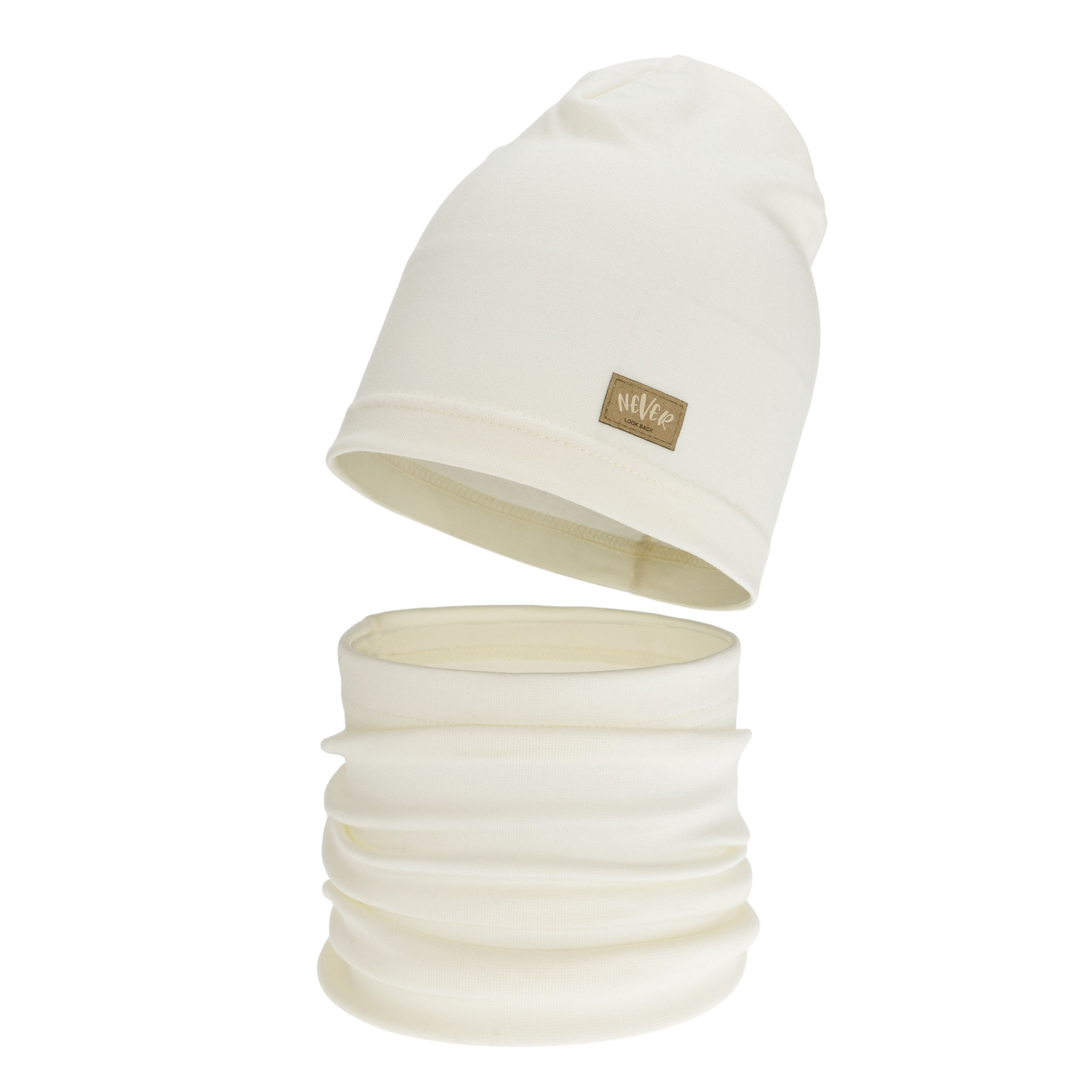 Komplet podzimní, jarní dívčí: čiapka a tunel, krémový, bavlnený, Torila
