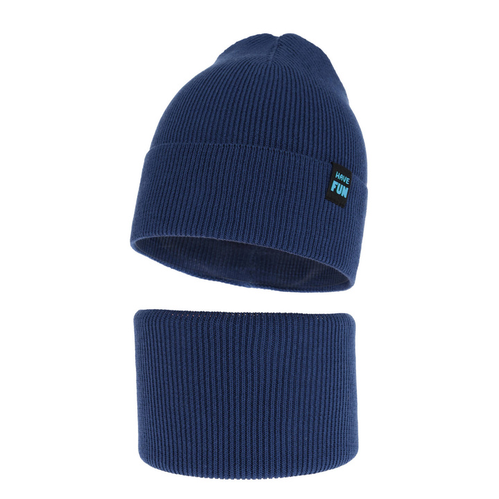 Jesenný/jarný chlapčenský set: čiapka a tunel, s bavlnou, tmavomodrý Kolorado